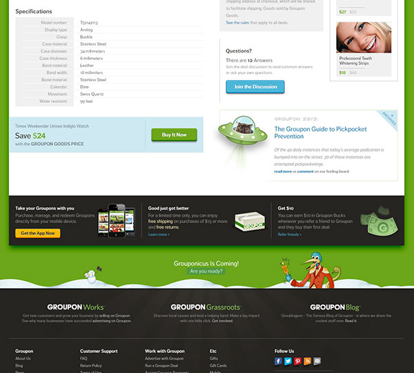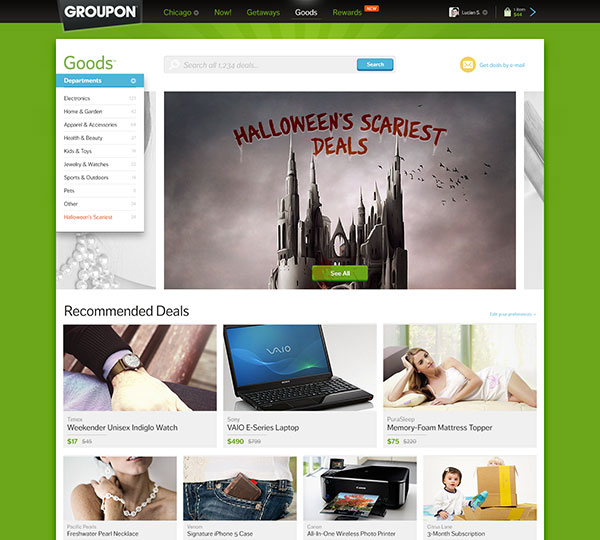 In that role I have worked directly on various aspects of the whole Groupon interactive experience, from user flows to interface designs. I’ve been involved in coming up with the art direction for various secondary efforts, such as some of the April Fools’ Day campaigns and the now famous flying cat mascot. I have also lead a redesign of the Groupon Goods platform shortly after its release.